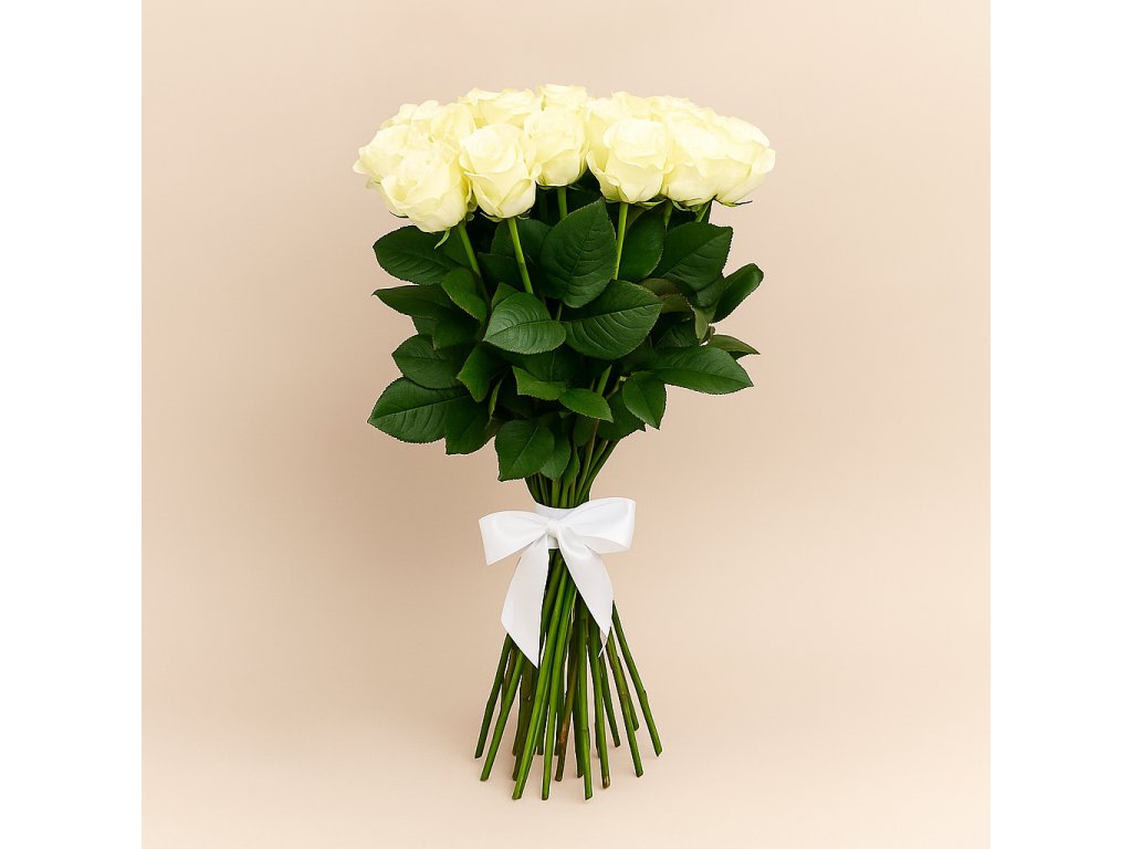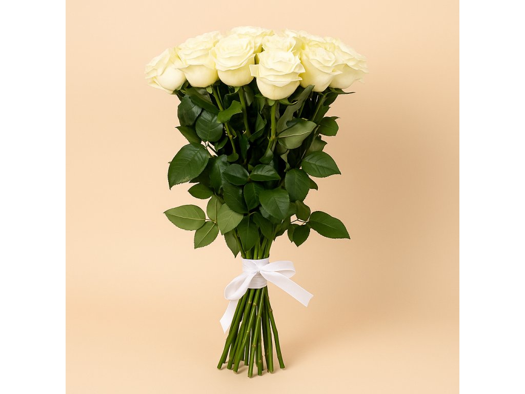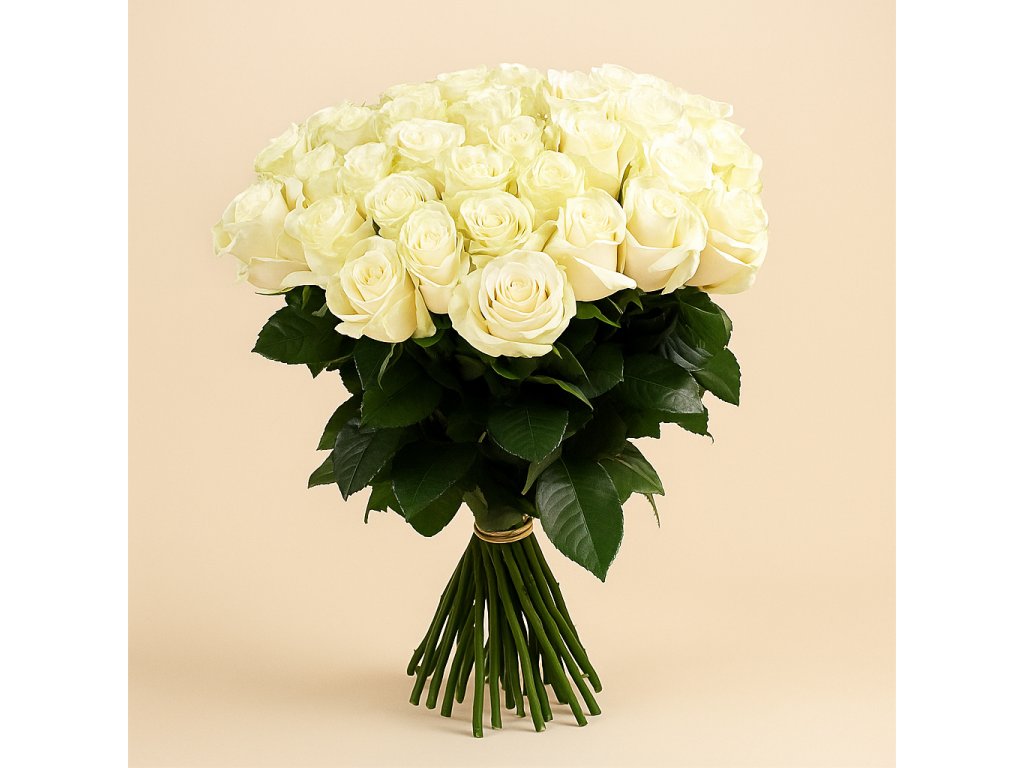 Na hlavní fotografii je zobrazena kytice z 35 bílých růží o délce 80 cm. Kytici je možné objednat i v jiných počtech kusů – například 51, 75, 101 a více růží – podle vaší představy a příležitosti.