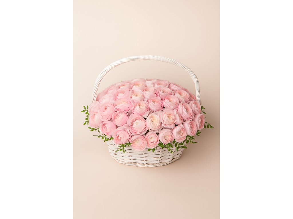 Darujte něžnou eleganci – květinový koš s ranunculy je jedinečným gestem, které rozzáří každý okamžik.