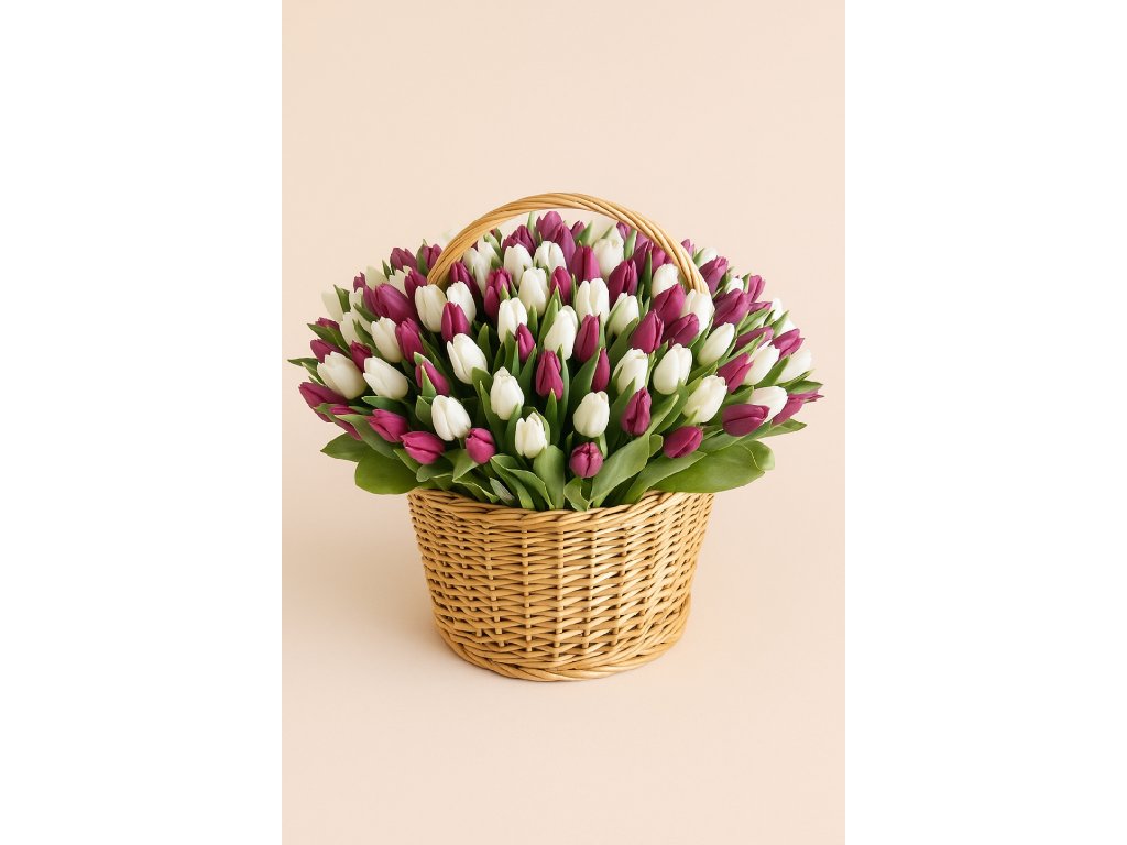 Tulipány dovážíme z prémiových holandských pěstitelství, která zaručují velké květy a dlouhou životnost. Každý koš je ručně aranžován našimi zkušenými floristy s důrazem na harmonii a detail.