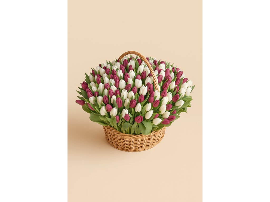 Tulipány jsou symbolem nové energie, optimismu a jemné elegance. V luxusním květinovém koši získávají zcela nový rozměr – aranžmá působí bohatě, svěže a přitom přirozeně. Díky pestré paletě barev je možné zvolit romantické jemné odstíny pro něžné příležitosti, výrazné a kontrastní barvy pro slavnostní události nebo jednobarevné varianty pro minimalistický a moderní styl.