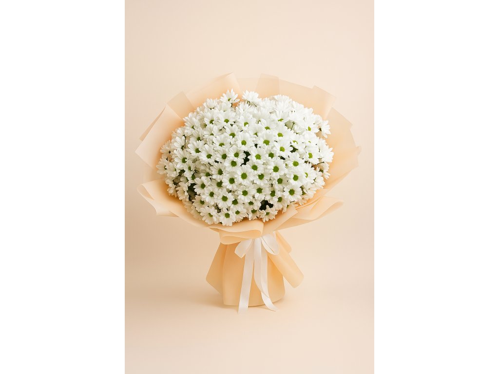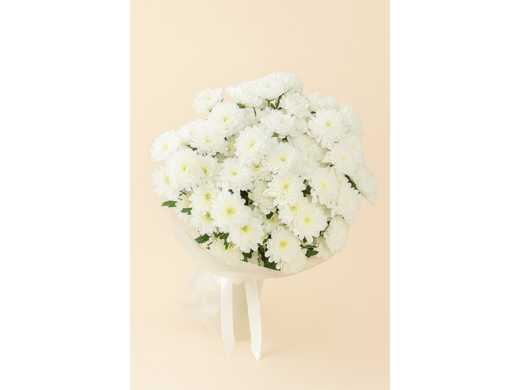 Kytice z bílých chryzantém ztělesňuje čistotu, eleganci a harmonii. Jemné sněhobílé květy symbolizují klid, upřímnost a nové začátky, díky čemuž je tato kytice ideálním dárkem pro oslavy narozenin, výročí, svatby, ale i jako decentní poděkování nebo výraz podpory.