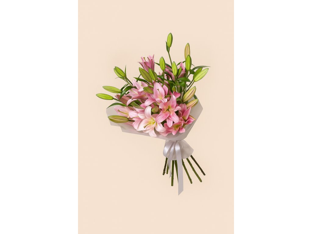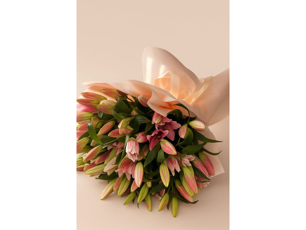 Růžové lilie pocházejí z Holandska, odkud dovážíme prémiové květiny s dlouhou výdrží a špičkovou kvalitou. Každá lilie je ručně vybraná a svázaná našimi zkušenými floristy tak, aby výsledná kytice působila harmonicky a elegantně.