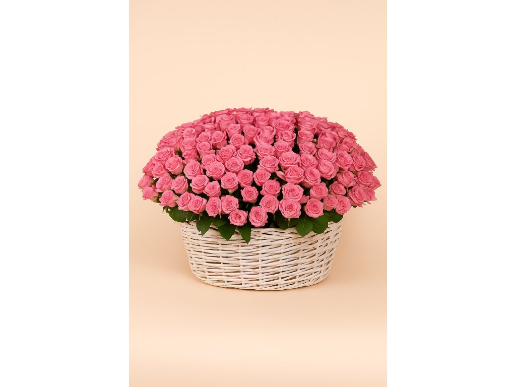 Růžové růže jsou tradičně symbolem něhy, obdivu a lásky. Koš s více než pěti sty květy vyjadřuje ty nejsilnější emoce – je to dar, který doslova bere dech. Tento monumentální aranžmá je ideální pro svatby, významná jubilea, luxusní oslavy nebo velká romantická gesta, na která se nikdy nezapomíná.