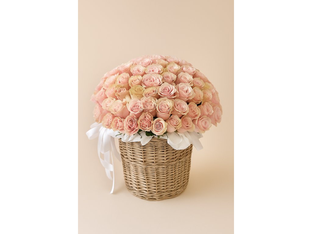 Růžové růže jsou symbolem lásky, obdivu a něžnosti. V košíku působí ještě honosněji a luxusněji, což z něj dělá ideální volbu pro výročí, svatby, narozeniny nebo romantická překvapení. Tento aranžmán je dokonalým vyjádřením emocí, které chcete sdílet.